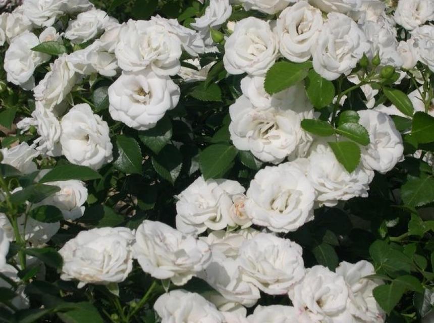 Splendide variété arbustive de  très grande qualité. L’abondance de la floraison, la tenue parfaite du coloris blanc rosé et sa forte résistance aux maladies font de lui un rosier très apprécié. Remontant. H=0,8 / 1m
