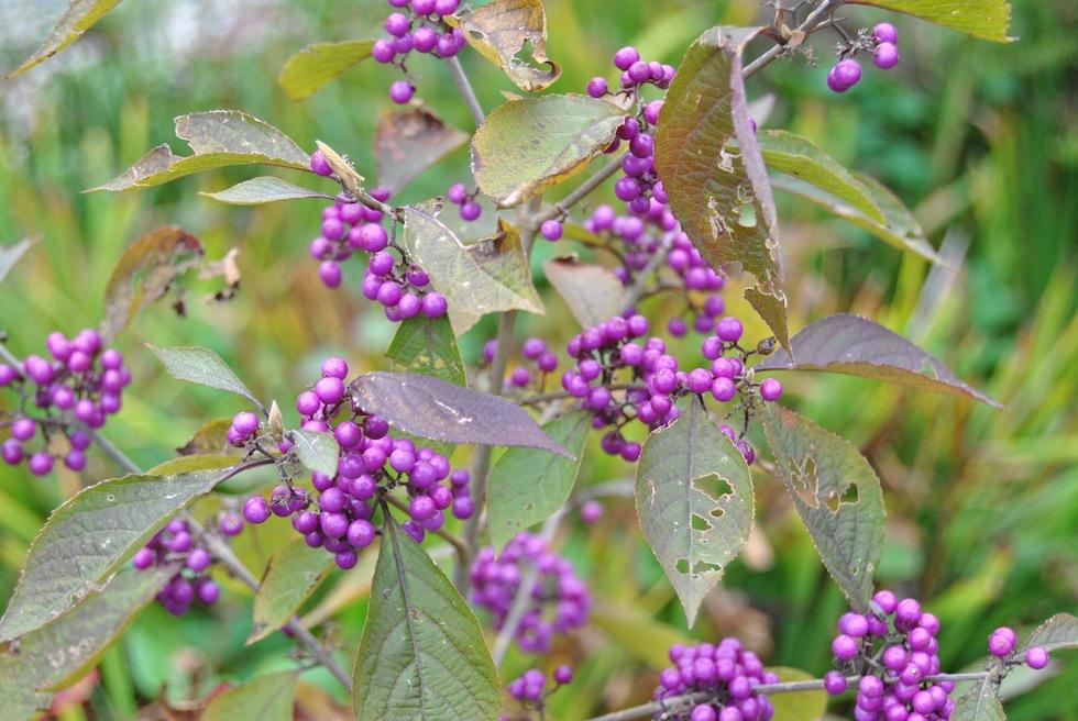 Le callicarpa ou arbre aux bonbons.Si la floraison estivale reste insignifiante, cet arbuste est beaucoup plus connu pour ses fruits qui apparaissent à l’automne et tiennent sur l’arbre une grande partie de l’hiver.
