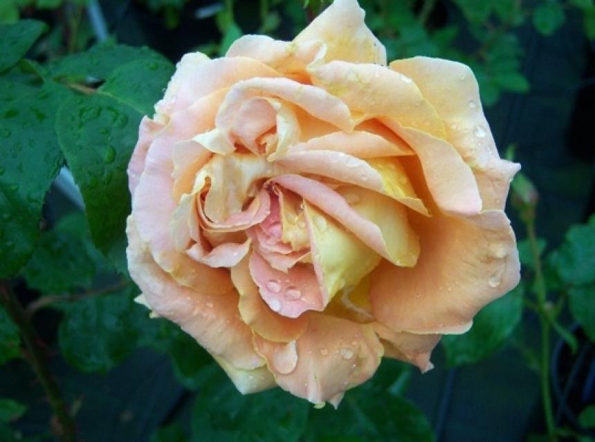 Parfum prononcé de fruits exotiques. La fleur s'ouvre en coupe bien turbinée, de 14 cm de diamètre, composée de 40 pétales. Feuillage vert sombre, brillant. Végétation forte. Rosier à grandes fleurs jaune ocré et orange Parfum de fruits exotiques Floraison remontante de mai jusqu'aux gelées.